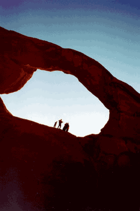 We drive off in 4-wheel-drive through the sand on 'a Bedouin Road' into high arid desert... We stop at a stone natural bridge and climb up through rocks... Hussein is a spider on the rocks... he zooms away up into the rocks... Zeinab and Kristina and I take Taif and their two sons and my oud and climb up into the eye of the stone arch... We sing Lebanese dabke... Zeinab knows the words and sings also... Jafr takes our picture from down below... The sun is approching the horizon...