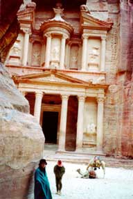 Today we were tourists... We walked for six hours through the ancient town of Petra, carved 2000 years ago out of the solid living red and purple sandstone cliffs in the bottoms of myriad labyrinthine canyons... ...incredible... ...but somehow I still wouldn't trade even one second of looking into Hussein's smiling eyes while he sings me another song for this experience in the ruins... I am lucky... I can have both...