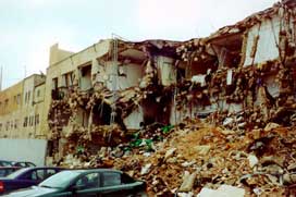 It's just that the Israelis have threatened to not let him ever return if he leaves. So there he sits, it seems. Only the central building is intact. It is surrounded by the rubble and twisted metal of several city blocks of what were once government offices (we are told) and smashed automobiles which were pulverized under the treads of the tanks...